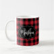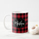 Red and Black Buffalo Plaid Monogram Mug with a name template for you to personalize. A cute and thoughtful monogrammed Christmas gift for mom, grandma, aunt, etc.