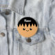 Personalized name button with funny cartoon face with black hair. Fun accessories for kid's barber shop, hair salon, hairdresser etc. Also fun for children's Birthday party.