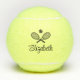 Personalized tennis balls printed with custom name or text in a classic elegant calligraphy feminine and girly script font with classic double crossed tennis racquet and tennis ball icon monogram. A perfect gift for mom, grandmother, or any woman or teen tennis player who would love the fun and unique twist on the classic tennis icon design of these modern monogrammed practice and keepsake tennis balls.