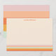 This personalized stationery features a fun retro geometric stripes design in a cute color palette of orange, yellow, peach, coral, pastel pink and mint green.