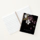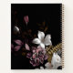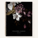 This notebook features a beautiful dark and moody blush pink, white and gold floral design on a black background.