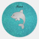 Personalized name dolphin turquoise glitter classic round sticker