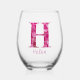 Personalized Name Elegant Pink Floral Monogram "H" Stemless Wine Glass