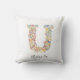 Personalized Name & Floral Monogram 'U' Throw Pillow.