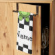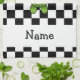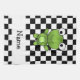 Create your own custom Personalized with a name,monogram, or initials or saying cute cartoon baby green frog with a black and white chequered pattern background and white stripe. Cute frog gift ideas for kids.