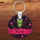 Create your own Personalized with a name,monogram, or initials or saying green cartoon cute baby frog with black pink polka dots pattern background and pink stripe