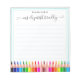 Modern From The Desk Of Notepad with Name. This design feature a handwritten script name and at the bottom colourful pencils on white background with aqua turquoise frame. You can customize this hand lettered script with your name. If you do not need personalize you can delete it. This lined notepad is a perfect gift idea for teachers and for her for any occasion. If you need help or matching item please contact to me. #3364