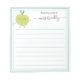 Modern From The Desk Of Notepad with Name. This design feature a handwritten script name and a cute smiling green apple on white background with aqua turquoise frame. You can customize this hand lettered script with your name. If you do not need personalize you can delete it. This lined notepad is a perfect gift idea for teachers and for her for any occasion. If you need help or matching item please contact to me. #3364
