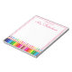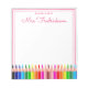 Modern From The Desk Of Notepad with Name. This design feature a handwritten script name and at the bottom colourful pencils on white background. You can customize this hand lettered script with your name. If you do not need personalize you can delete it. This notepad is a perfect gift idea for teachers and for her for any occasion. If you need help or matching item please contact to me. #3364