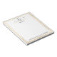 I LOVE this notepad! It is top quality, very classy with the gold border and I use everyday. There is no question that the personalization is unique and it is the perfect size for quick messages to others and enclosures for attachments in mailings. I will definitely order again, as well as continue to order from Zazzle for my other needs, including personal note cards, return address labels and monogram envelope seals. Excellent! most of the time the gold borders from other vendors are dull, but this one really shines. There is no smearing or fading. Perfect!