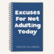 Keep track of your "reasons" in style with this Humourous "Excuses for Not Adulting Today" Notebook, featuring bold white text on a classic navy blue background. Perfect for jotting down thoughts, plans, or, of course, creative excuses, this customizable notebook is both fun and functional. Add your name or a personal message to make it uniquely yours. Whether for personal use or as a lighthearted gift, this notebook is ideal for anyone who loves a touch of humour with their organization. Choose from lined, blank, or graph paper inside to suit your needs and get ready to skip a day of "adulting" in style.