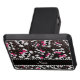 Personalized custom name halloween black skulls with heart eyes and pink bows in glitter sparkles (NOT REAL GLITTER) pattern and with a bling black diamonds stripe (not real diamonds) with pretty hearts and dots personalized with your name gifts or monogram gifts or your initials. Fun skull halloween gift ideas for girls.