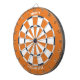 Dartboard with a orange, blue and white colour scheme with two lines of your personalized text such as the recipient's name and "Class of" graduating year. Great graduation gift for a high school grad entering college! Fun and functional decor for the dorm room full of school spirit!