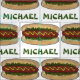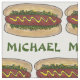 Fabric features an original marker illustration of a hot dog with mustard and relish on a bun. Simply personalize with your name!