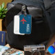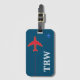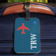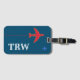 front side:A red plane on a blue (custom) background with the name-initials of the traveller