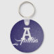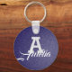 It's A Blue Key chain With a Personalized Name and Monogram in a White colour
