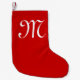 Personalized Christmas stocking with custom name monogram. Red or customixable colour. Cute monogrammed xmas decorations for the Holidays. Change the quantity to get the cheapest price per sock. Elegant script typography initial letter. Suitable for men, women and kids. Initialled x-mas stockings.
