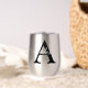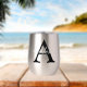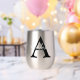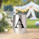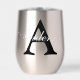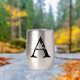 Personalize this silver metallic thermal wine tumbler with any surname and single custom monogram.