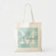 Personalized name monogram tote bag | Turquoise / Teal blue mosaic pattern. Elegant logo design with monogrammed letter initials. Cute vintage gift idea for bride and bridesmaids at wedding party or bridal shower.
