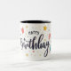 A simple and elegant mug design featuring a custom name in beautiful script, surrounded by small birthday-themed elements like balloons, stars, and confetti. Perfect for making any birthday extra special.