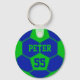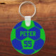 Personalized Name Number Green Blue Soccer Ball Keychain