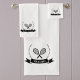 An elegant white towel personalized with a racket design, perfect for men and women. This towel bears your own name, adding a unique touch of personalization. The elegance and style of the drawn rackets make this towel a perfect complement for tennis lovers or sports enthusiasts.