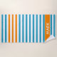 Striking cabana stripe beach towel with blue,orange and white striped pattern. Personalize with your name.