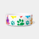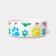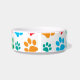 This is a heavy, durable bowl decorated with Tibbies of many colors, the perfect size for hungry/thirsty Tibs. The design is interesting and printing clear.