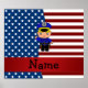 Create your own custom Personalized with just add your name (family name),monogram, greeting or initials or saying cute cartoon blue uniform cop / police man with a navy blue and white stars with red and white stripes usa american patriotic pattern background and red stripe. Cute policeman patriotic gift ideas.