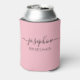 In a lovely shade of pink, this can cooler features modern script typography, allowing you to customize it with each bridesmaid's name. The unique long-tailed embellishment on the name adds a sophisticated and stylish flair, making it a delightful keepsake for your bridal party.