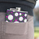 Modern and trendy Custom name sports white golf balls and green golf tees with pink hearts pattern purple background and with beautiful purple diamonds (not real diamonds) with pretty hearts and dots stripe personalized with just add your name gifts or monogram gifts or your initials for a unique gift. Sports gift ideas for women and girls. Ideal for women's golf players.
