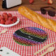 Great accent for an outdoor summer party. Bright colors, vibrant floral design