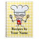 Personalized name recipe notebook | cartoon chef design. Cooking gifts with funny cartoon, cute sayings, quotes and humourous jokes. Customize and personalize products with your own text or name. Create your own gifts related to cooking, baking, bbq, food and more. Including baking utensils.