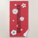 Personalized Name Red Retro Style Flowers Beach Towel