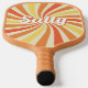 Pickleball paddle in a pretty curved rainbow pattern in colours of oranges, golden yellow and cream with the name in colours of Oranges and yellow. Colours of the name or change it to a monogram, can be changed, just ungroup them and choose from the colour pallet. To make more changes go to Personalize this template. On the bottom you’ll see “Want to customize this design even further? Click on the EDIT using Design tool. From there you can change some of the fonts & some colours, move things around or delete what you need. Makes a great gift for your coach, team or best pickleball buddy!