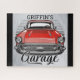 Personalized NAME Retro Red Classic Car Garage Jigsaw Puzzle