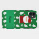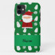 Cute christmas santa gift ideas. Create your own custom Personalized just add name,monogram, or initials or saying on your cute cartoon santa with red suit, white beard, green mittens and hat with pompom, with a green snowman, snowflakes, holly pattern background and green stripe. Cute santa gift ideas for kids and girls and boys. If you hit the customize it button you can change the colour and type of font.