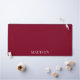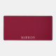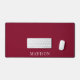 Personalized name desk mat with your name in a simple white typeface on a burgundy red background. Simple minimalist modern typography. Perfect for home or office workplace.