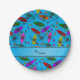 Personalized name sky blue rainbow kayaks paper plate