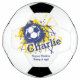 Yellow and blue football / soccer ball splatting in the net customized name ball. Perfect to inspire young footballers and soccer players to keep it up. Personalize with your own name and message of encouragement. Currently reads Charlie Super Striker Keep it up. Unique design by Sarah Trett.