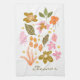 This pretty kitchen towel features a stylish floral illustration of flowers in pink, orange, and green. Personalize it with your name in script lettering. Great gift idea!