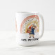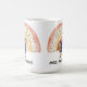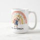 Customizable name mug gift for a teacher with cute watercolor painted boho rainbow and a bunny carrying books.