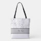 This lovely grey and white botanical tote bag would make a great gift! Personalize the front and back with a name or change the words to anything you like!