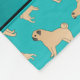 Modern and trendy Pug dogs pattern with a brown and black Pug dog and stripe personalized with your name gifts or monogram gifts or your initials. Cute Pug dog gift ideas for dog lovers. If you hit the customize it button you can change the colour and type of font and you can also add your own pictures.