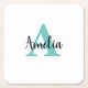 Personalized Name Turquoise Script Monogram Square Paper Coaster