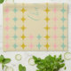 This custom kitchen towel features a retro midcentury-inspired star dot pattern in soft pastel pink, aqua, and gold on a creamy background. The centre showcases your personalized name in elegant script, making it a charming and functional piece for any stylish kitchen. Perfect for home chefs, holiday hosts, or housewarming gifts.