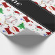 Modern and trendy sports baseball pattern with baseballs, baseball bats, snow, cute santa claus, santa hats, white red blue snowflakes, green red and yellow stars, green christmas trees with white background and with white black stripe personalized with just add your name gifts or monogram gifts or your initials for a unique gift. Sports gift ideas for men and boys and girls. Ideal for christmas presents.