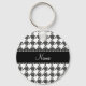 Personalized name white houndstooth pattern keychain