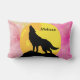 Silhouette of a wolf on top of a mountain howling at the moon with multicolored background it can also be personalized with any name you would like to give this pillow too.