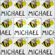 Simply personalize with your name! Fabric features an original marker illustration of a black-and-yellow bumblebee.